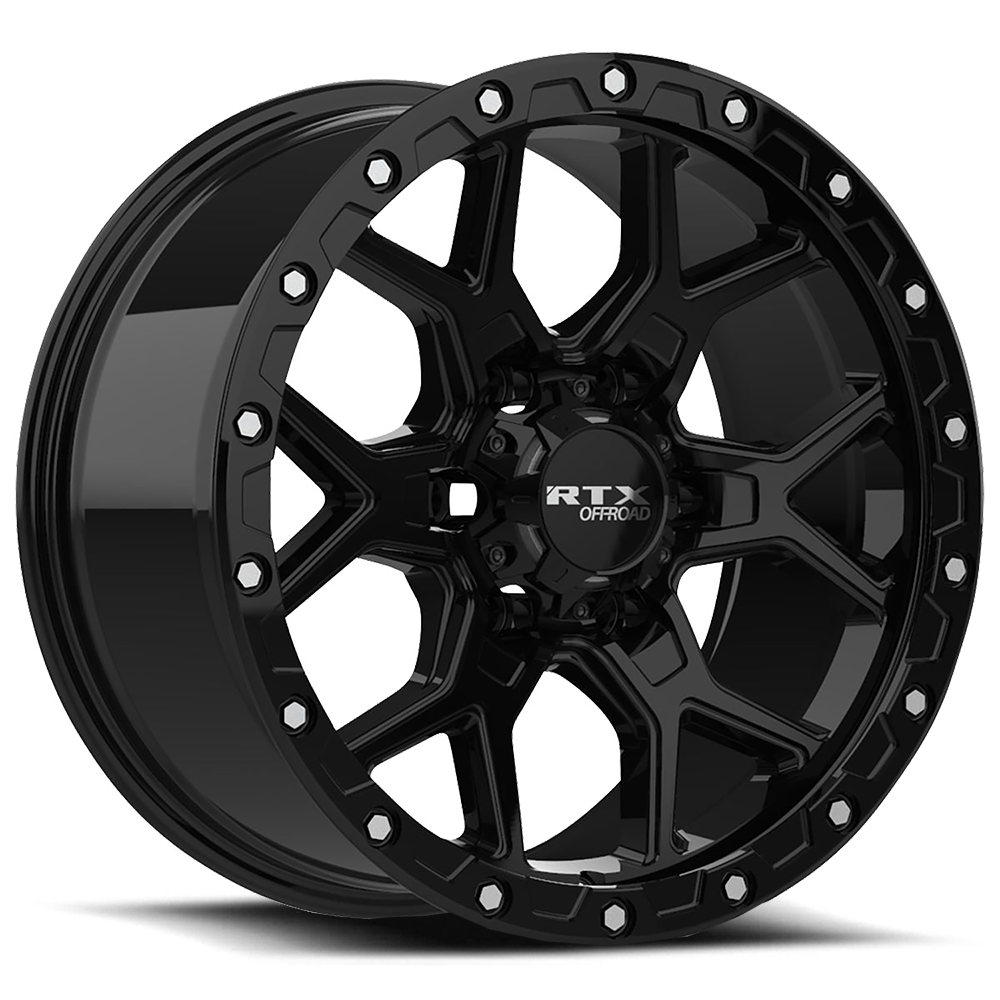 RTX Storm Gloss Black With Milled Rivets 20x9 +20 6x139.7mm 106.1mm